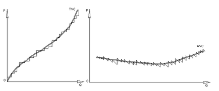Рис. 2. Ступенчатые изменения валовых и средних переменных издержек.