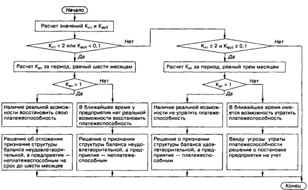 Рисунок 1 – Алгоритм оценки структуры баланса и возможностей восстановления (утраты) платежеспособности