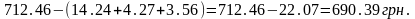 Відрахування у Фонд непрацездатності - 0,5% від нарахованої заробітної плати (712.46грн.).