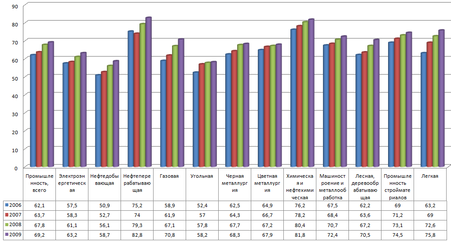 | Отрасль | 2006 | 2007 | 2008 | 2009 |