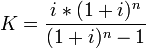 (следует учитывать, что данная формула является чисто математической, то есть на практике возможны некоторые девиации, вызванные округлением, а также неодинаковой продолжительностью месяца и года; особенно это касается последнего по сроку платежа).