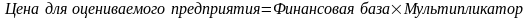Для определения итоговой величины стоимости может быть использована формула среднеарифметической простой. Её применение означает, что оценщик одинаково доверяет всем мультипликаторам. Для наиболее объективных приёмов определения итоговой величины рыночной стоимости является метод среднеарифметической взвешенной. В зависимости от конкретных условий, целей и объекта оценки, степени доверия к информации, каждому мультипликатору и каждому варианту стоимости придаётся свой вес. На основе такого взвешения получается итоговая величина стоимости, которая может быть взята за основу для проведения последующих корректировок. В работе используется формула среднеарифметической простой.