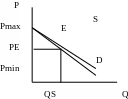 Графически излишек потребителя, можно изобразить через площадь фигуры, ограниченной кривой спроса, осью ординат и равновесной ценой PE, то есть площадь PmaxE PE. Излишек потребителя – это часть общественного излишка от существования рыночного механизма. В свою очередь, равновесная цена обычна выше минимальной цены, которую могли бы предложить наиболее эффективные фирмы. Следовательно, совокупные издержки производителей равны площади фигуры PminEQE, а излишек производителя составляет площадь PEEPmin. Это излишек наиболее эффективных фирм, которые могут предложить товар на рынок ниже равновесной цены PE, но предлагают товара по более высокой рыночной цене. Общественный излишек от существования рынка равен сумме излишка потребителя и излишка производителя.