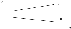 На рис.2.2 б) цена спроса меньше цены предложения21 при любом неотрицательном объеме выпуска; сумма денег, которую потребители готовы заплатить за данный товар недостаточна, чтобы компенсировать затраты на его производство. Производство такого товара технологически вполне возможно, но экономически нецелесообразно.