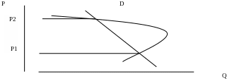 На рис.2.3 а) линия спроса имеет нормальный вид, то есть характерный отрицательный наклон. В то же время линия предложения меняет знак наклона при росте цены, что приводит к существованию двух положений равновесия – в точках E1 и E2.