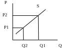 Совершенно эластичное предложение (ES = ∞) имеет место тогда, когда величина предложения бесконечно изменяется при малом изменении цены.