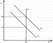 Цена на недвижимость, в том числе и на землю, определяются? таким образом, только спросом. Уменьшение спроса от D0 до D1 привело к снижению цены от R0 до R1.