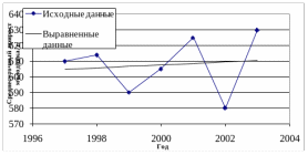 Рис. 3.1. Фактические и выравненные уровни среднесуточного прироста молодняка
