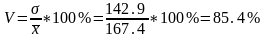 Среднее значение равно 167.4 кг, среднеквадратическое отклонение 142.9 кг, коэффициент вариации равен 85.4% - это значение очень велико, следовательно, распределение нельзя считать нормальным.