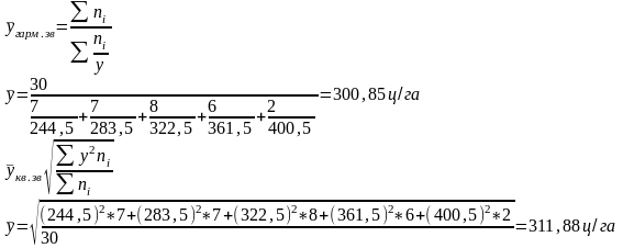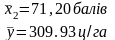 Під час виконання завдання були зроблені певні висновки. Розрахунки показали, що середній рівень врожайності ності для вибіркової сукупності становить 308,2 ц/га. Середній рівень міжрядних обробітків становить 1,87 шт, якості грунту – 71,27 бали.