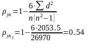 Коефіцієнт кореляції рангів – це один із найпростіших показників тісноти кореляційної залежності (має назву коефіцієнт Спірмена). Його визначають за формулою: