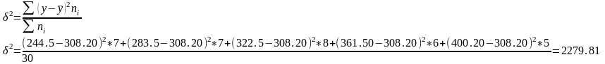 Таблиця 10.Вихідні та розрахункові дані для визначення дисперсії способом моментів