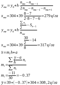| № групи | Серединне значення інтервалу | Кількість господарств | m1 | m2 | ||