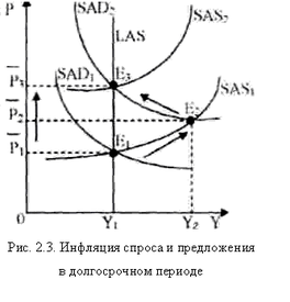 Графическая интерпретация инфляции спроса и предложения в долгосрочном периоде представлена на рисунке 2.3.