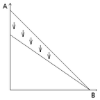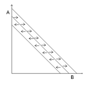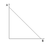 Если же цена товара А растёт, а цена товара В неизменна и доход остался прежним, то бюджетная линия изменит угол своего наклона. При прежнем бюджете покупатель сможет купить меньше подорожавшего товара А, если весь доход будет истрачен исключительно на этот товар. Следовательно, бюджетная линия вновь изменится: