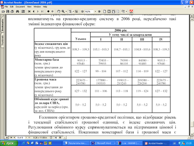 З урахуванням головних чинників та тенденцій, що впливатимуть на грошово-кредитну систему в 2006 році, передбачено такі змінні індикатори фінансової сфери (таблиця 3.1) [24]