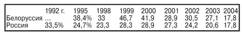 Таблица Б.1 - Денежные доходы ниже прожиточного минимума в России и Белоруссии