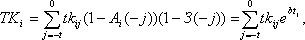 где tki - накопленные знания i-го типа полученные в j - й период, Ai - моральный износ знаний типа i в единицу времени (моральный износ), З - забывание в единицу времени знаний индивидуумом, b - эмпирический числовой коэффициент, обратный по размерности времени, t - время необходимое для получения знаний в объеме TK.