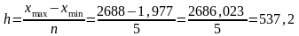 - максимальное и минимальное значение групп признака, в моем случае это 2688 и 1,977.