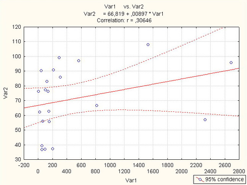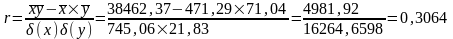 Коэффициент корреляции из расчетов составил 0,3064, что говорит о слабой зависимости факторов.