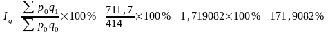 В результате произведенного индексного анализа количества произведенной продукции КСП имени Дзержинского было выявлено, что в анализируемом предприятии по сравнению с передовым хозяйством количество произведенной продукции в целом по предприятию увеличилась на 44,21% и в абсолютном выражении этот показатель перерасхода затрат показал 1300 тыс. грн. На этот показатель повлияло снижение количества продукции растениеводства на 0,81%, что составило 12 тыс. грн экономии затрат и увеличение количества произведенной продукции животноводства на 90,17%, что составило 1312 тыс. грн. [25, стр. 289 - 295].