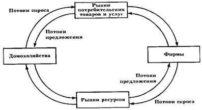Основными субъектами рыночной экономики являются домохозяйства и фирмы. Домохозяйства предъявляют спрос на потребительские товары и услуги, являясь одновременно поставщиками экономических ресурсов. Фирмы предъявляют спрос на ресурсы, предлагая, в свою очередь, потребительские товары и услуги. Поведение основных экономических агентов может быть выражено кругооборотом спроса и предложения.