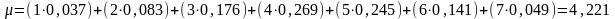 | Вероятность появления ( | 0,037 | 0,083 | 0,176 | 0,269 | 0,245 | 0,141 | 0,049 |