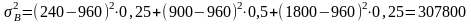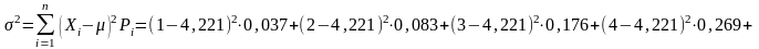 Рассчитываем дисперсию (средневзвешенное отклонение) по формуле: