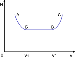 Участок кривой ВС характеризует рост средних издержек производства от увеличения объема производства, т.е. для фирмы наращивать объемы выпуска продукции больше V2 невыгодно.