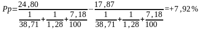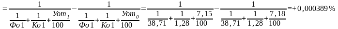 Совокупное влияние: +0,001096+0,0283+0,000389 = +0,0298%