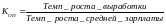 Главный вывод этой таблицы очевиден: производительность труда растёт на 125% в год, хотя не сопровождается ростом зарплаты. В этом случае можно посчитать коэффициент опережения роста выработки над ростом зарплаты.