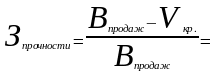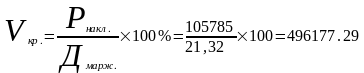 Точка безубыточности может быть определена, как отношение постоянных затрат (накладных расходов) к доли маржинальной прибыли в общей выручке от реализации.