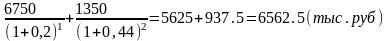 ЧДД=(1237,49+2343,74+3046,87+2539,062)-(5625+937,5)=9167,162-6562,5=2604,662 (тыс.руб.)