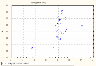 Рис. 3.3 - Кореляційне поле, яке зображує зв’язок результативної змінної та факторної змінної X3
