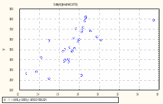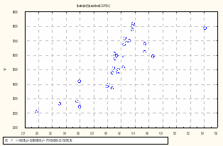 Рис. 3.4 - Кореляційне поле, яке зображує зв’язок результативної змінної та факторної змінної X4.