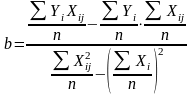 – теоретичне значення результативної перемінний, обчислене по рівнянню регресії, за умови, що i-ий об'єкт має значення факторної перемінний, рівне Хij;