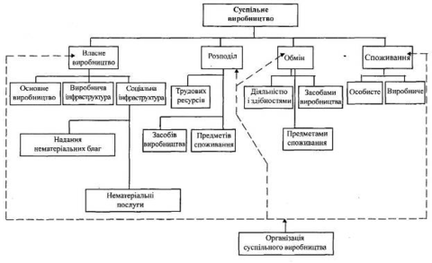Водночас змінюється організація виробництва, яка забезпечує єдність, злагодженість функціонування всіх його факторів, взаємодію людей як учасників процесу виробництва. Поглиблюється галузева диференціація суспільного виробництва, ускладнюється його структура, з'являються нові галузі виробництва. З часом складається народне господарство, яке поступово перетворюється у складний комплекс, що включає великі народногосподарські сфери і комплекси, галузі і підгалузі, територіальні формування.