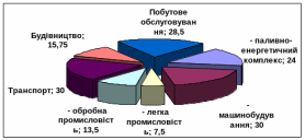 З даної таблиці бачимо що надходження в бюджет від галузі будівництва становлять 15,75млн.грн. від галузі Побутового обслуговування 28,5млн.грн. від галузі