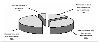 Як бачимо, найбільшу частку в загальному обсязі продажів займають продажу запчастин для вантажних автомобілів і сільгосптехніки. Це викликано тим, що протягом тривалого періоду керівництво підприємства приділяло основну увагу саме цим групам товару, і на даний момент підприємство має стійкі налагоджені зв'язки, як з постачальниками даного виду продукції, так і з підприємствами-споживачами.