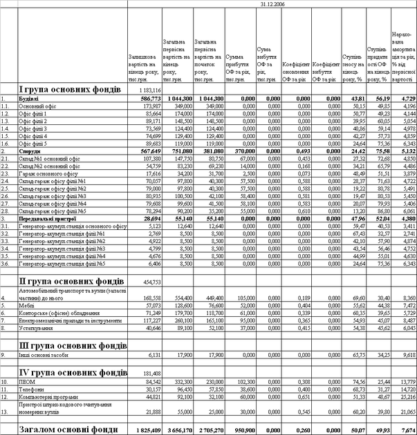 7. Залишкова вартість основних фондів на кінець 2006 року становитиме