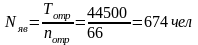 Тпл. = явки + неявки (ч-д) = 46,214 + 21,5 = 185 человек