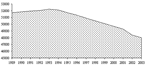 За період між двома переписами загальна кількість населення України скоротилася на 3291,2 тис. осіб, або на 6,3% (з 51706,7 тис. до 48415,5 тис. осіб). Найбільша чисельність населення в Україні фіксувалася на початку 1993 р. - 52244,1 тис. осіб. Від того часу і до 5 грудня 2001 р. демографічні втрати склали 3787,0 тис. осіб; 72% цих втрат становить природне зменшення населення.