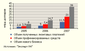 Рынок лизинга вырос в 2007 году в 2,6 раза и достиг 39 млрд. долл. Он мог бы вырасти еще больше - помешал кризис ликвидности, который также повлиял и на расклад сил на рынке.