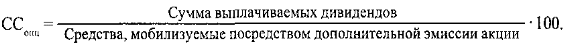 Цена капитала при дополнительной эмиссии акций может быть определена из выражения