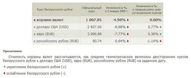 Со 2 января 2009 года Национальный банк Республики Беларусь переходит к использованию механизма привязки курса белорусского рубля к корзине иностранных валют.