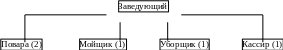 В организационной структуре различают два уровня управления – 1 уровень представлен заведующим столовой, а второй уровень – остальными подразделениями. Норма управляемости для руководителя составляет 5 человек. Так как норма управляемости невысока (у различных авторов она варьируется от 3 до 30), то заведующий способен эффективно управлять предприятием.