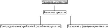 Часть необходимых факторов предприниматели могут вкладывать в производство в материально-вещественной форме (помещение, машины, инструменты и др.) с определением их стоимости; формирование других факторов требует выделения необходимых для этого денежных средств. Функционирование организации нуждается в деньгах как платёжных средствах для оплаты денежных требований и денежных средствах, которые вкладываются в приобретение факторов производства, и, следовательно, длительное время не могут быть использованы в иных целях.