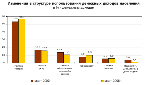 | ____________________ 1) Сбережения включают прирост (уменьшение) вкладов, приобретение ценных бумаг, изменение средств на счетах индивидуальных предпринимателей, изменение задолженности по кредитам, приобретение недвижимости. |