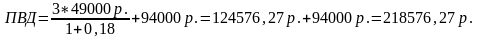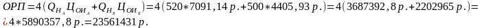 ПР=(7091,14р.*520+4405,93р.*500)-4531045р.=3687392,8р.+2202965р.-4531045р.=5890357,8р.-4531045р.=1359312,8р.