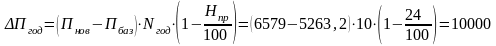– годовой прирост чистой прибыли от реализации модернизированного оборудования – 10000 р